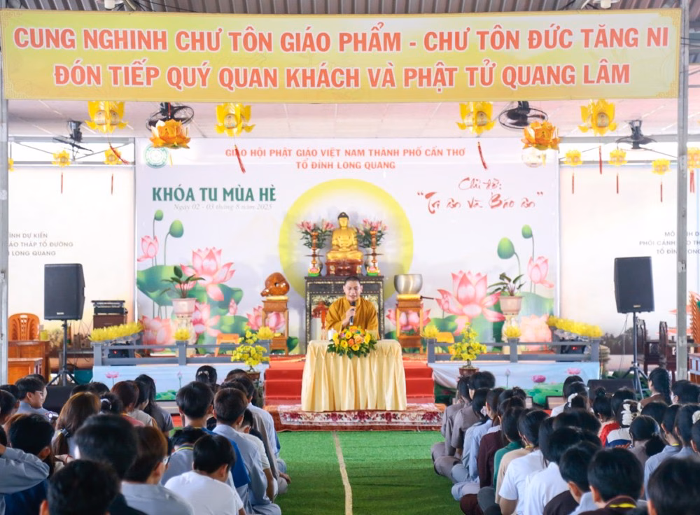 Khóa tu mùa hè lần thứ 2 với chủ đề ‘Tri ân và Báo ân’ đã được tổ chức thành công tại Tổ đình Long Quang, phường Long Tuyền, TP. Cần Thơ, từ ngày 02 đến 03/8/2025. Sự kiện này đã thu hút hơn 400 bạn trẻ tham gia với tinh thần phấn khởi và sẵn sàng bước vào hành trình tu học đầy ý nghĩa.