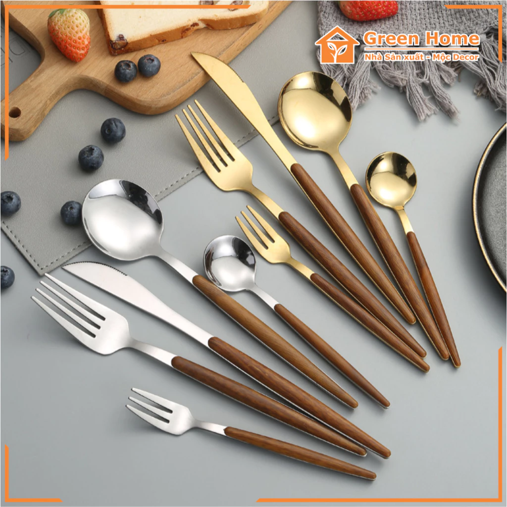 🔥 Bộ Dụng Cụ Ăn Uống Gồm Muỗng/ Nĩa/ Dao Bằng INOX 304 Không Gỉ Họa Tiết Vân Gỗ Cao Cấp Sang Trọng đang giảm giá!