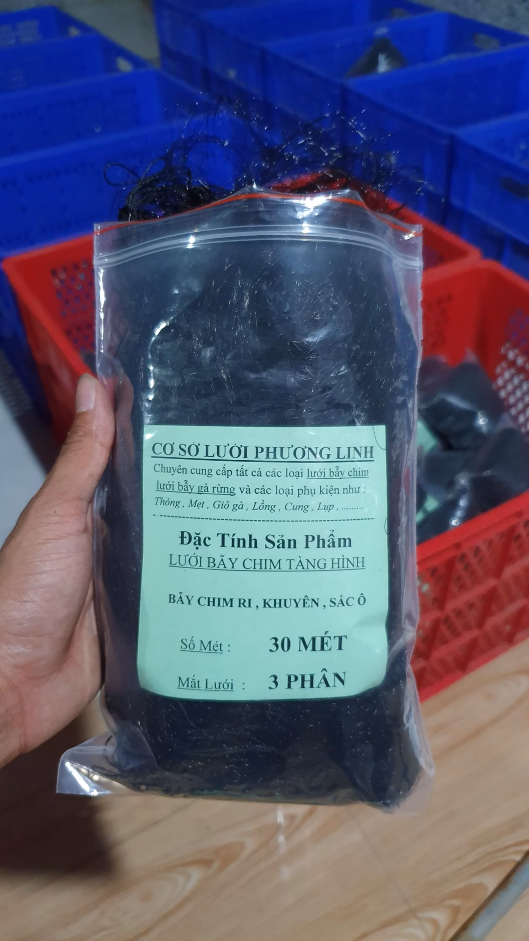 🔥 30 mét lưới bẫy chim ri , sắc ô , khuyên , sẻ ( lỗ 3 phân chiều cao 5m 5 dây 4 túi ) lưới cước thái màu đen tàng hình đang giảm giá!