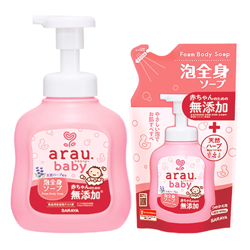 - Làm sạch nhẹ nhàng: Arau Baby giúp loại bỏ bụi bẩn và dầu thừa trên da và tóc mà không gây kích ứng.