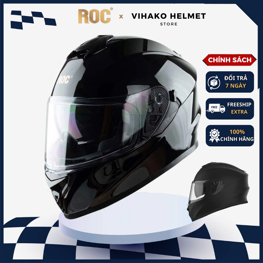 🔥 Mũ bảo hiểm fullface roc r08 2 kính nón cả đầu đi phượt royal helmet chính hãng màu đen vihako nhựa abs đang giảm giá!
