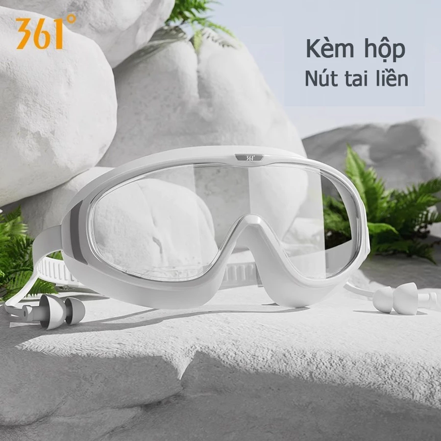 - Tính năng: Kính bơi người lớn 361 có thiết kế góc rộng và nút tai kính bơi, giúp tăng sự thoải mái và giảm thiểu tiếng ồn