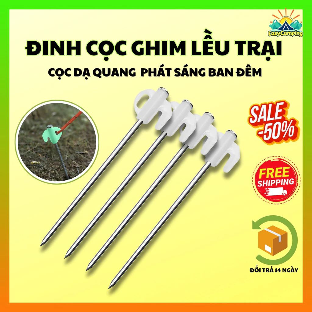 - Đinh sắt đầu dạ quang: Loại đinh sắt này có đầu được thiết kế dạ quang, giúp phát sáng trong bóng tối. Điều này rất hữu ích khi cắm trại vào ban đêm, giúp bạn dễ dàng nhìn thấy và định vị lều.