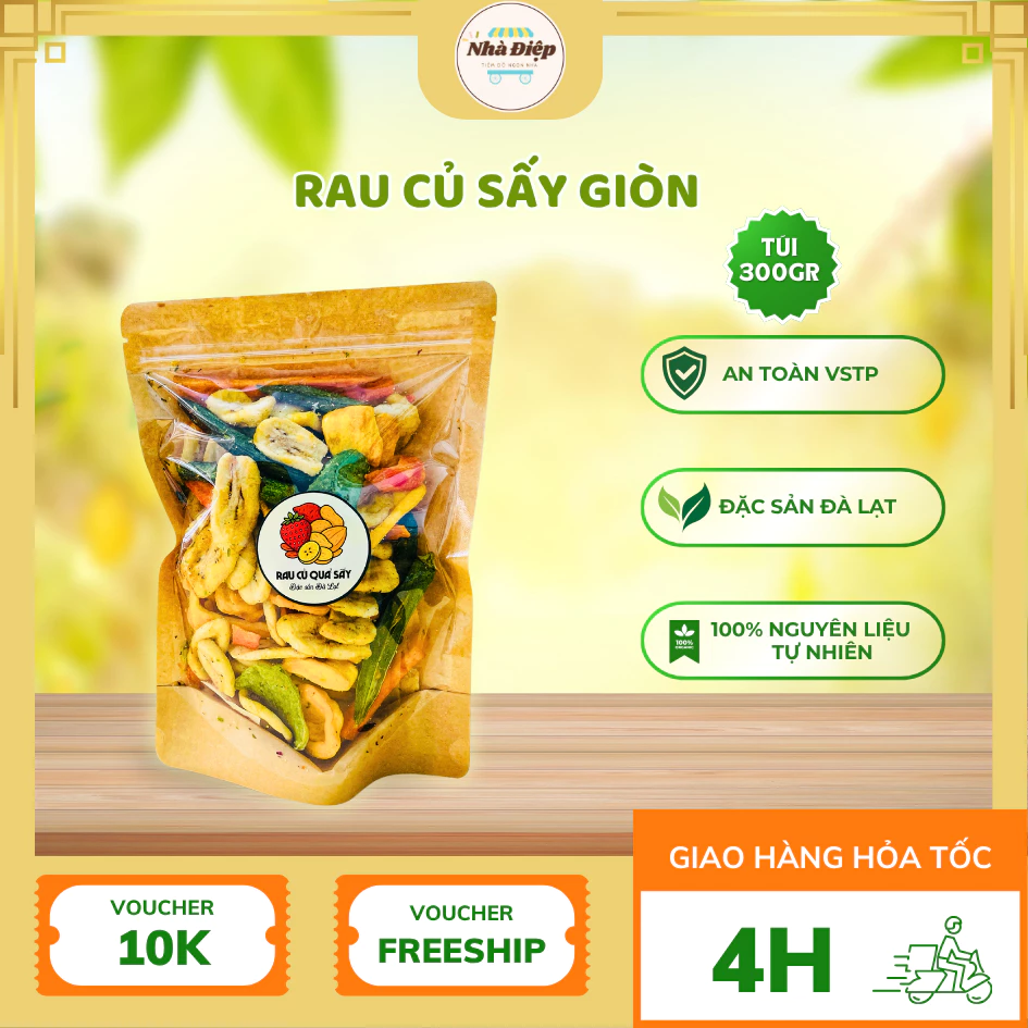 🔥 Rau Củ Sấy Giòn Thơm Đặc Sản Đà Lạt Tiệm Ngon Nhà Điệp Túi 300GR đang giảm giá!